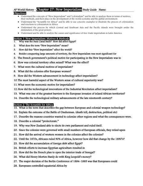 Read Ap World History Chapter 27 New Imperialism Study Guide Answers PDF